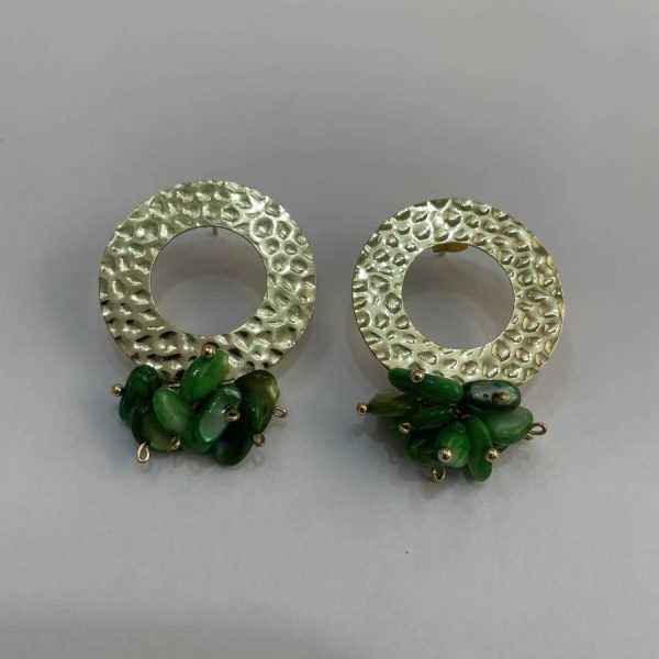Aros base grande redonda piedras chips verdes baño oro
