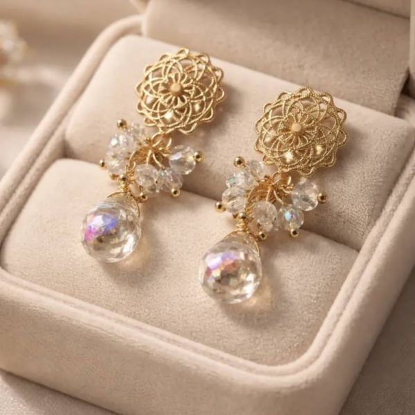 Aros gota y piedras tornasol baño oro